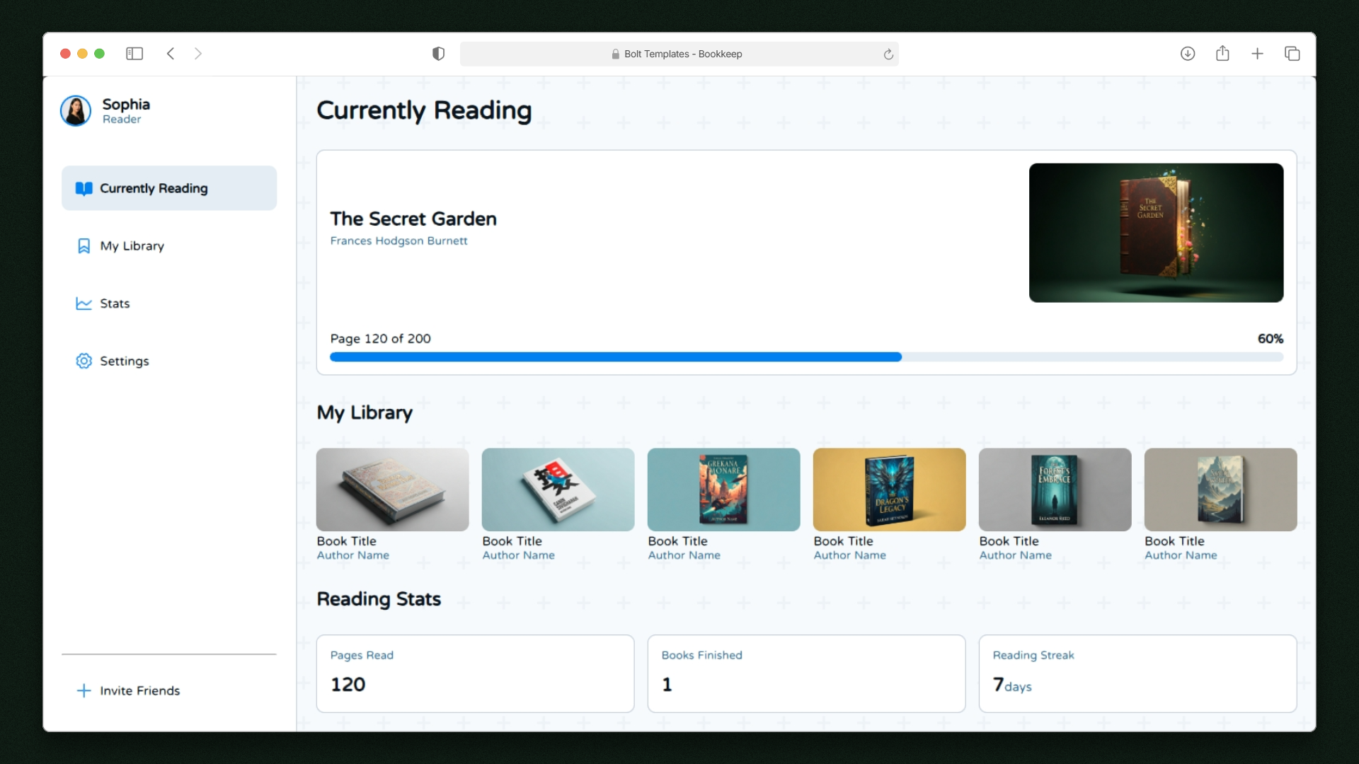 A book library for bookworms, using a minimal clean UI for simplicity, with progress stats and current reads.